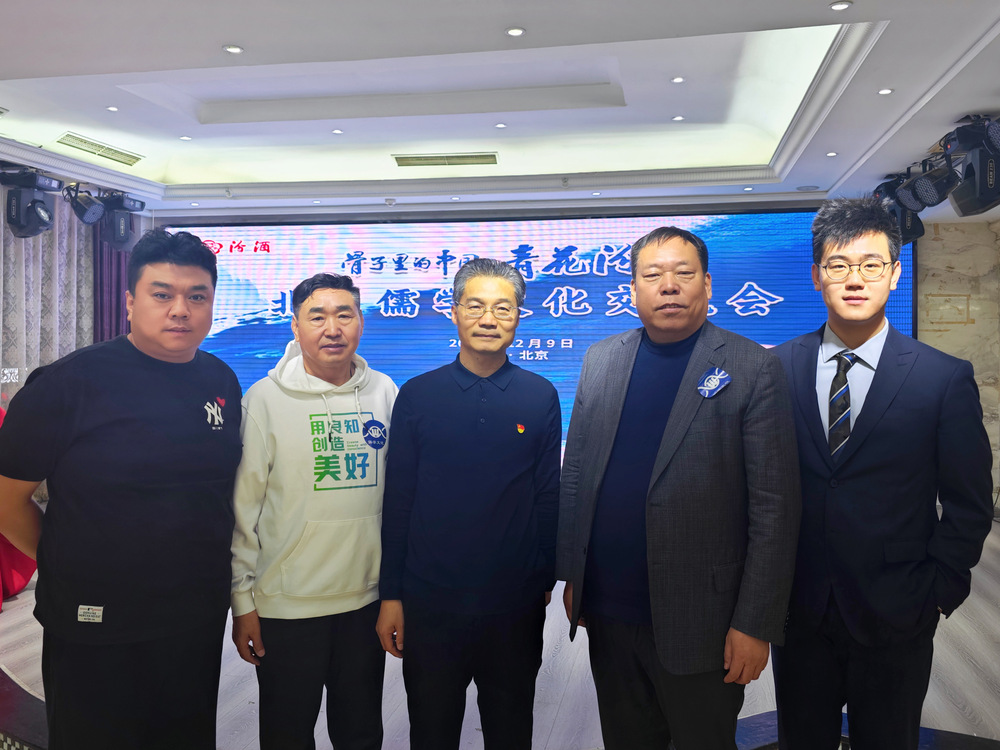 (从左往右依次)闪梭传媒合伙人南光、儒促会副会长冯春海、儒促会会长柳河东、儒促会副会长张延国、闪梭传媒创始人/CEO兼儒促会副会长胡戴岳